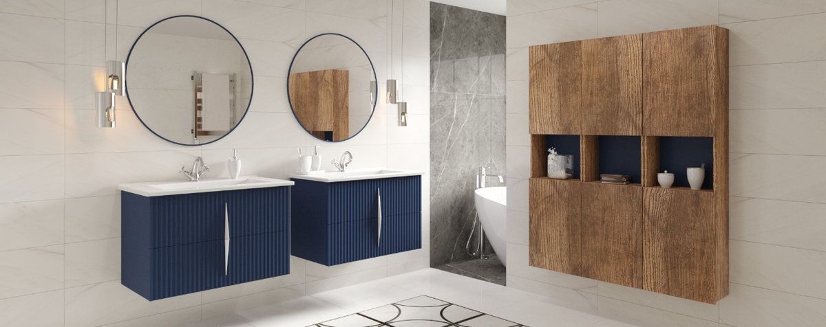 ■ Наличие в ассортименте модульной мебели для ванной и возможность производства индивидуальных заказных комплектов;