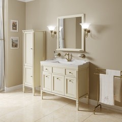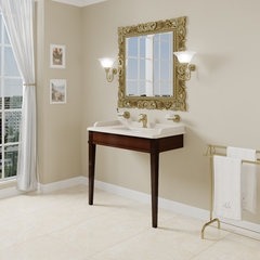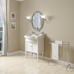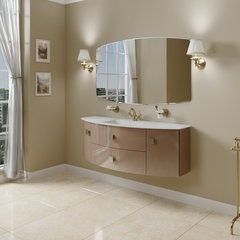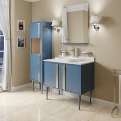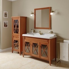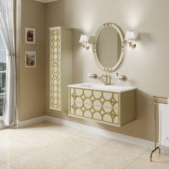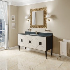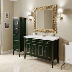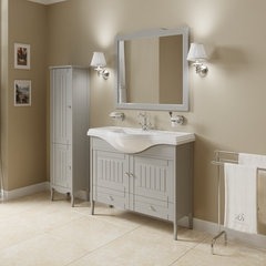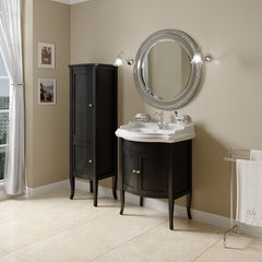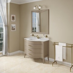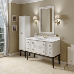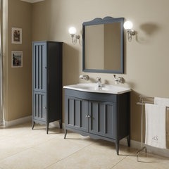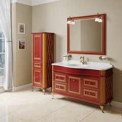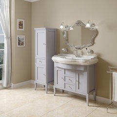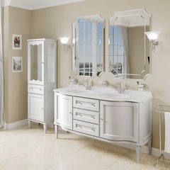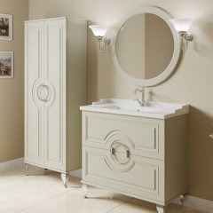 Мебельный ассортимент коллекции очень широк: тумбы для раковин самых популярных размеров, с керамическими раковинами или со столешницами, шкафы, пеналы и зеркала – позволяют организовать интерьер любой ванной комнаты в изысканном классическом стиле.