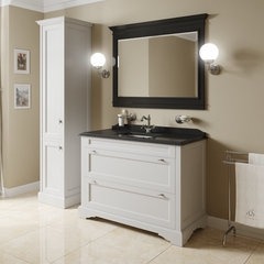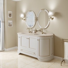 Базовый ассортимент тумб комплектуется керамическими раковинами в размерном диапазоне от 60 до 120 см. Кроме этого разработана целая линейка тумб от 90 до 140 см со столешницами с одной или с двумя раковинами. Столешницы из натурального мрамора толщиной 30 мм идеально дополнят классический интерьер коллекции ALBION.