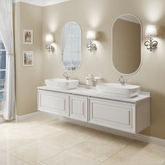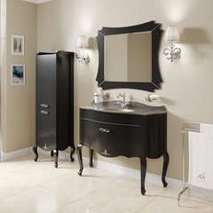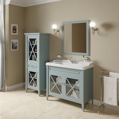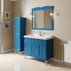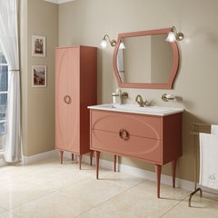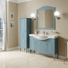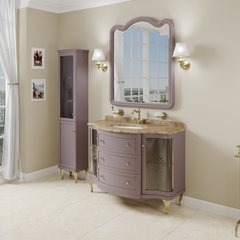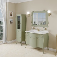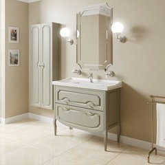 Базовый ассортимент коллекции составляют тумбы в размере 80 – 110 см которые комплектуются керамическими раковинами-моноблок. Шкаф-пенал дополняют коллекцию необходимым функционалом. Внутренние зеркала коллекции, а также зеркала серии "Италия" в резных рамах прекрасно подойдут для формирования единого интерьерного стиля.