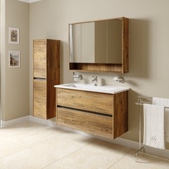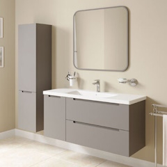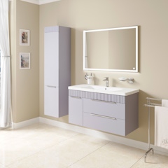 Ассортимент и размерный ряд невероятно широк: тумбы от 60 до 140 см, с керамическими раковинами или со столешницами, шкафы, пеналы и зеркала – позволяют организовать интерьер любой ванной комнаты.