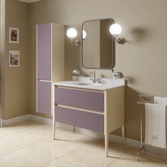 Основу ассортимента составляют тумбы на металлических ножках, которые комплектуются керамическими раковинами широкого размерного ряда. В состав коллекции входят функциональный и удобный шкаф-пенал и линия зеркал, выполненных в едином стилевом решении с тумбами. Зеркала серии могут быть укомплектованы под заказ итальянскими светильниками с покрытием хром или бронза.