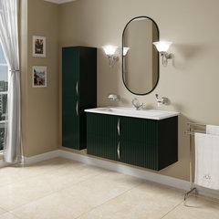 Коллекция ATRIO – яркий образец мебели для ванной в современном и очень модном стиле АРТ-деко. Возможность выбора фасадных решений и двуцветной отделки значительно расширяют круг поклонников данной коллекции. В составе коллекции предлагаются тумбы двух размеров – с 2-мя либо 3-мя фасадами, одинаковыми по размеру. Симметричность форм – важный элемент стиля. Тумбы разработаны под столешницы с врезными раковинами и могут дополняться зеркалами, разработанными в едином с ними стиле.
