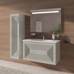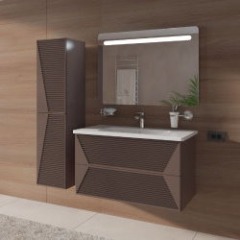 Ассортиментный ряд коллекции состоит из тумб в комплекте с керамическими раковинами-моноблок в размерном диапазоне от 60 до 100см, а также удобного и вместительного пенала. Дополняют серию мебели зеркала в стилизованных рамах.