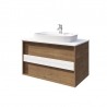 Базовый ассортимент тумб комплектуется керамическими раковинами с одной или двумя чашами в размерном диапазоне от 60 до 120 см. Также присутствуют тумбы с 2-мя раковинами, которые сопрягаются со столешницами. Для них оптимальным материалом является искусственный камень толщиной 20 мм.