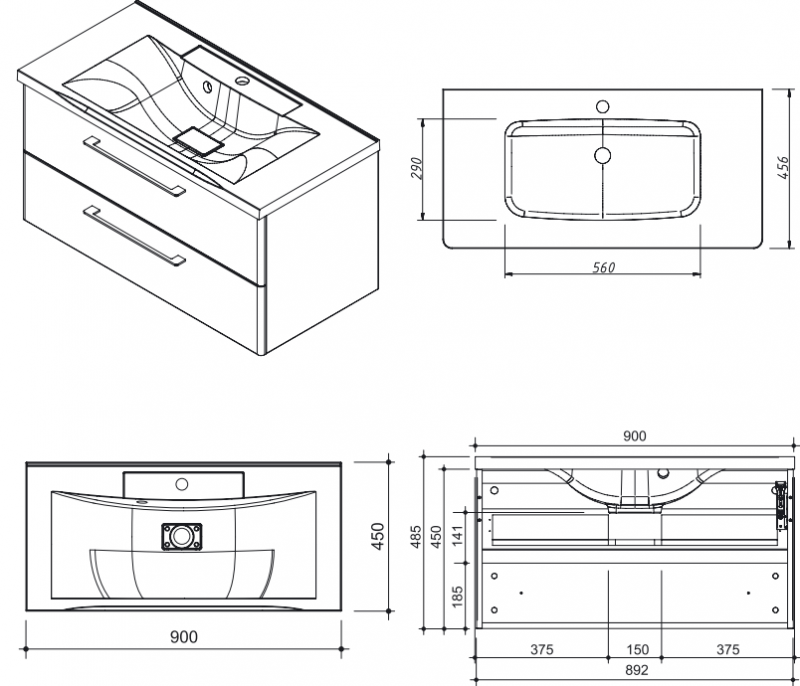 | модель-раковина-литьевой-мрамор-ПРИМА-900 | |
