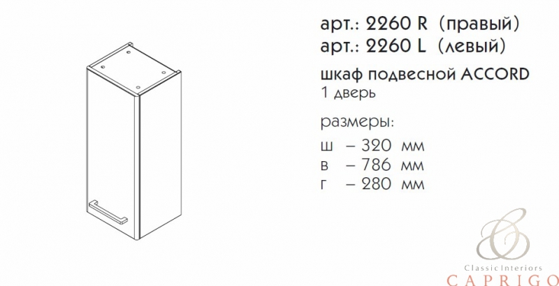 Подвесной шкаф Accord выпускается в отделках ТР-810 ГРАФИТ и TP-811 БЛАНЖ на склад.Остальные отделки под заказ.Возможно расположение петлей слева или справа.