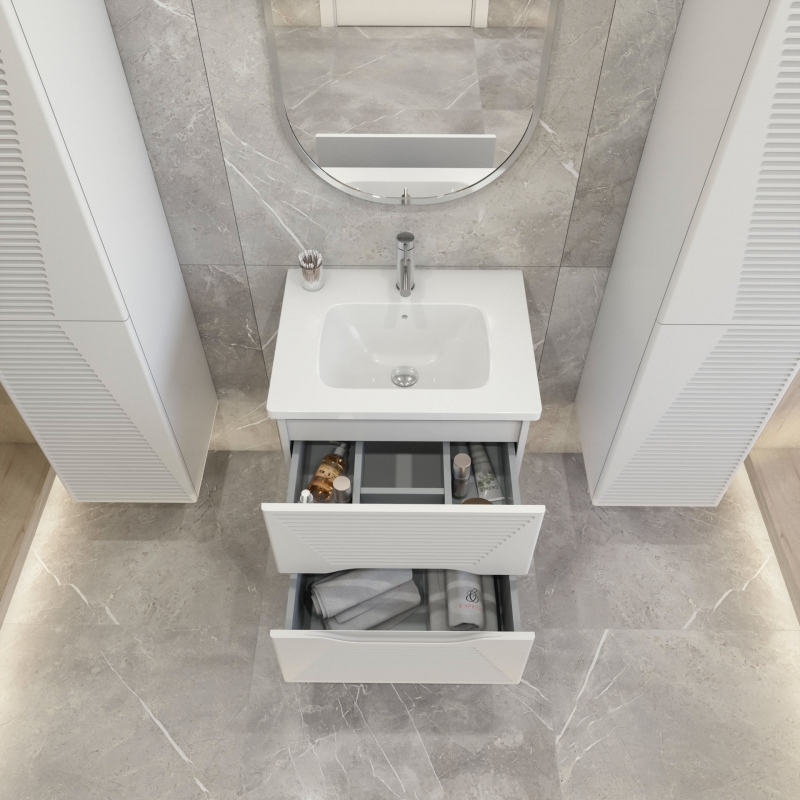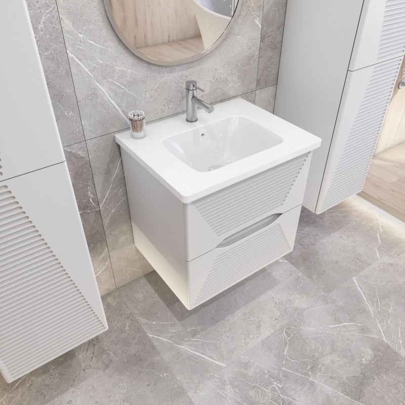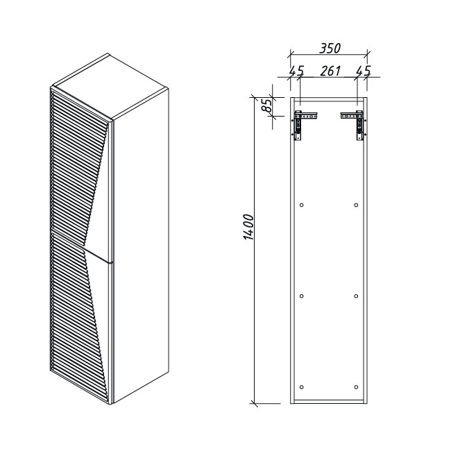 MODO–Terza шкаф-пенал 2 двери подвесной производится в отделке SF027 Бланж. Петли на выбор слева и справа