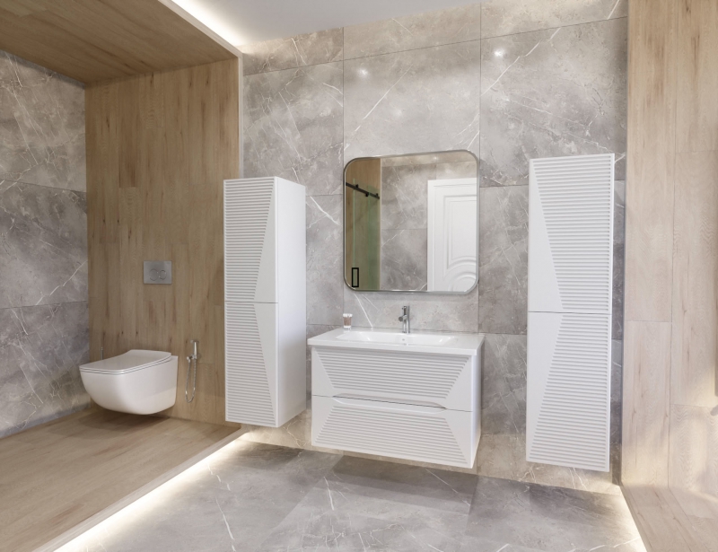 MODO–Terza шкаф-пенал 2 двери подвесной производится в отделке SF027 Бланж. Петли на выбор слева и справа