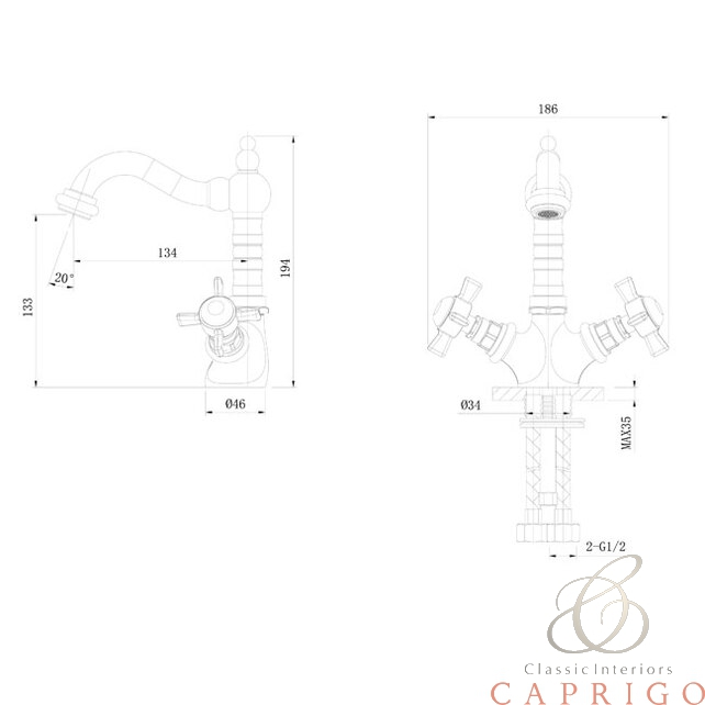 BRISTOL смеситель для умывальника, с донным клапаном и подводкой, поворотный излив, xромированный