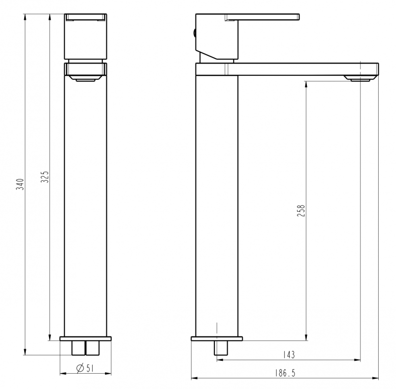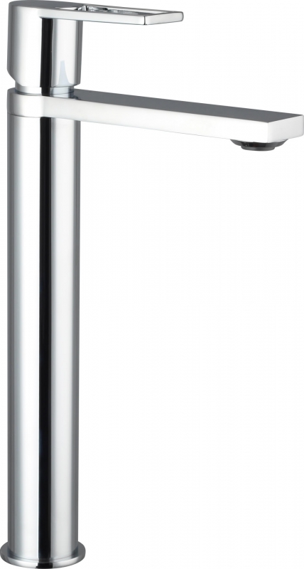 Смеситель KUB для умывальника высокий, с гибкой подводкой 40см, без донного клапана