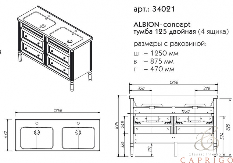 Тумба в ванную комнату ALBION-concept 125 см производится под заказ в любых отделках "SOFTTOUCH" из реестра отделок CONCEPT. Оснащена четырьмя выдвижными ящиками. Раковина приобретается отдельно.