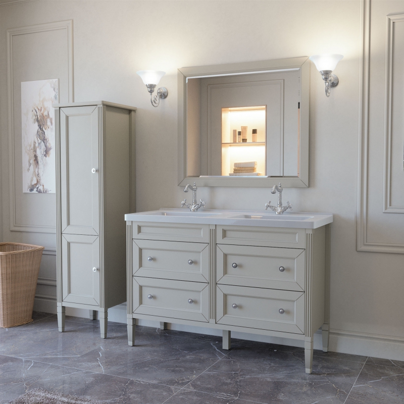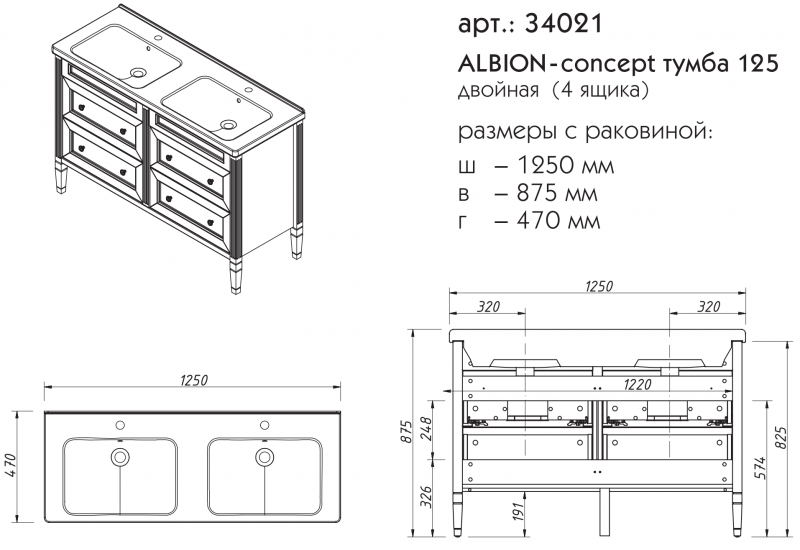 ALBION concept тумба 125 двойная (4 ящика) производится под заказ в любых отделках "SOFTTOUCH" из реестра отделок CONCEPT Двойная фаянсовая раковина продается отдельно