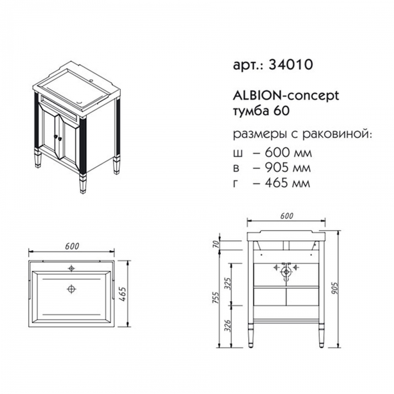 Напольная тумба в ванную ALBION-concept 60 с раковиной производится под заказ в отделке "Стилл" в пределах 14 дней. фаянсовая раковина приобретается отдельно.