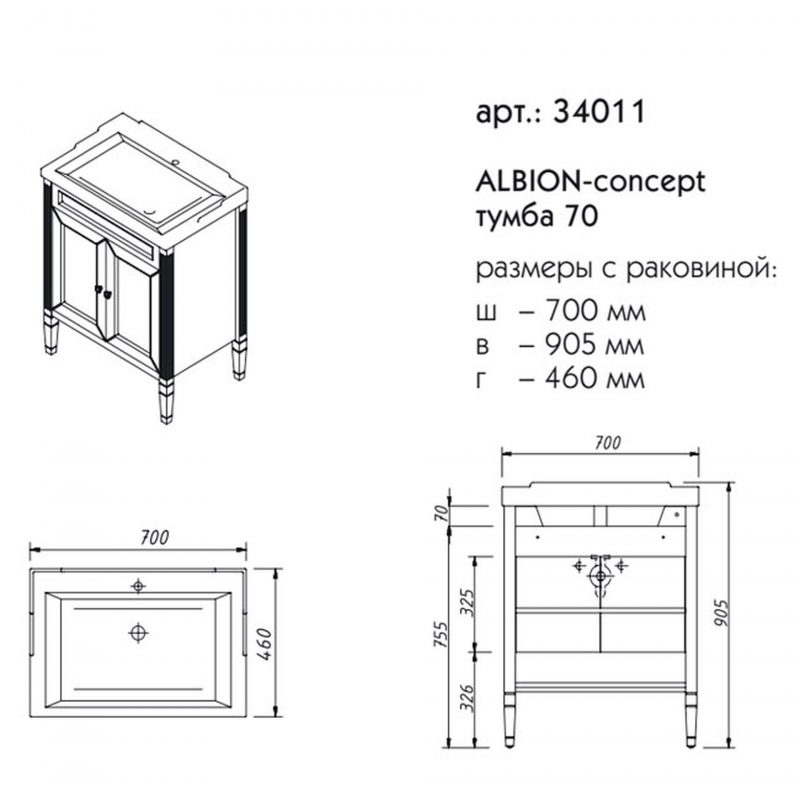 Тумба с раковиной ALBION - concept 70 в ванную комнату производится под заказ в отделке "Стил" в пределах 14 дней. Отдельно приобретается фаянсовая раковина.