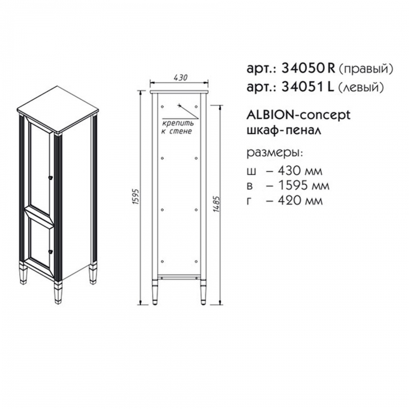 Шкаф-пенал Albion Concept — это стильное и функциональное решение для организации хранения в ванной комнате. Модель отличается современным дизайном и высоким качеством исполнения.