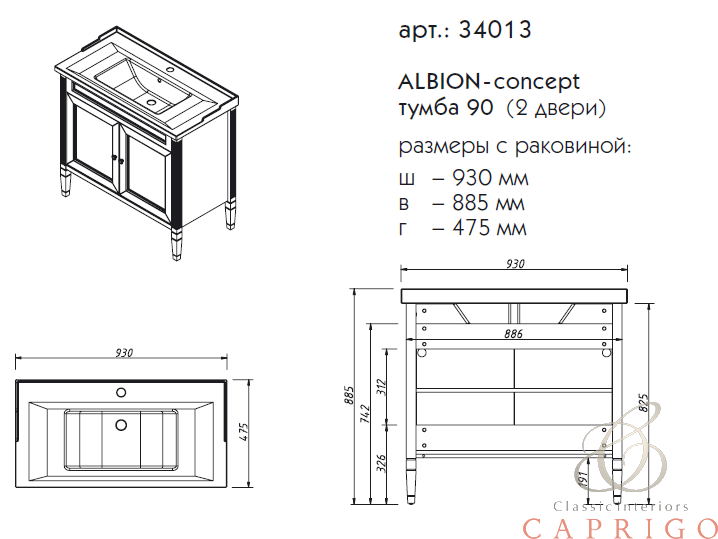 Тумба ALBION-concept 90 см с двумя дверьми производится под заказ в любых отделках "SOFTTOUCH" из реестра отделок CONCEPT. Фаянсовая раковина приобретается отдельно.