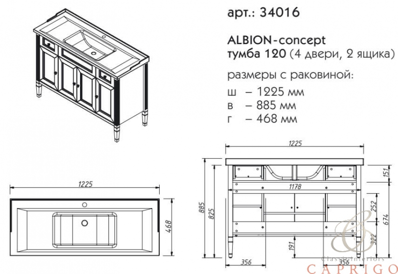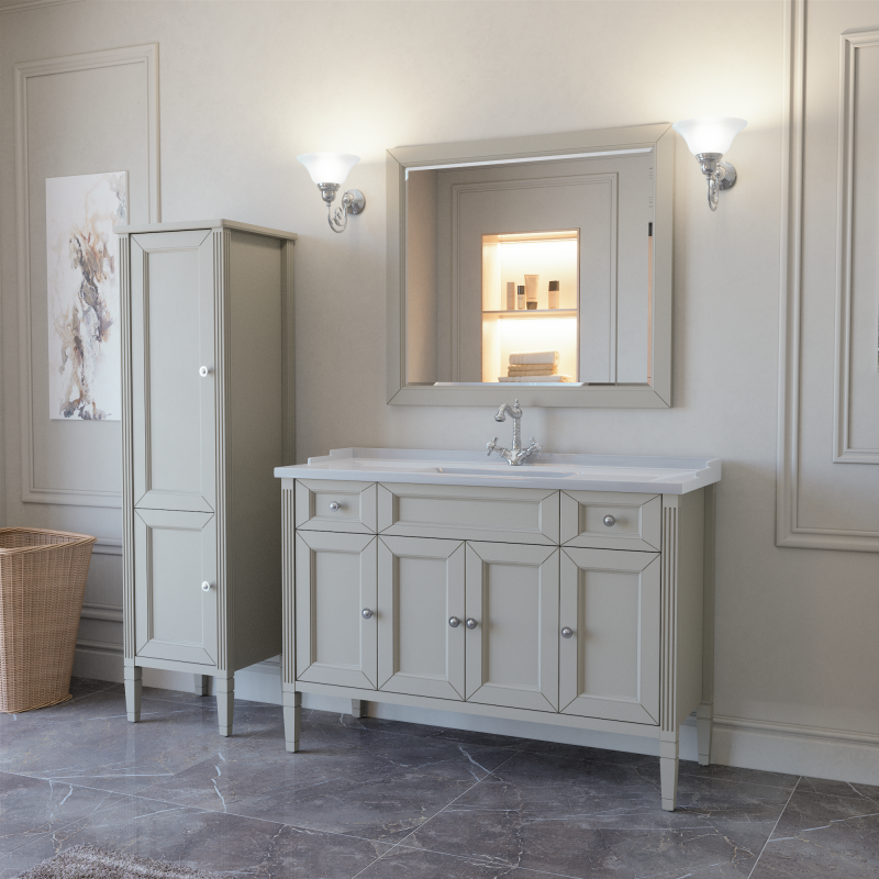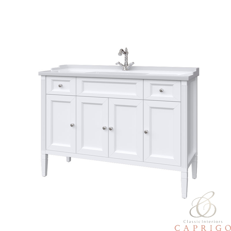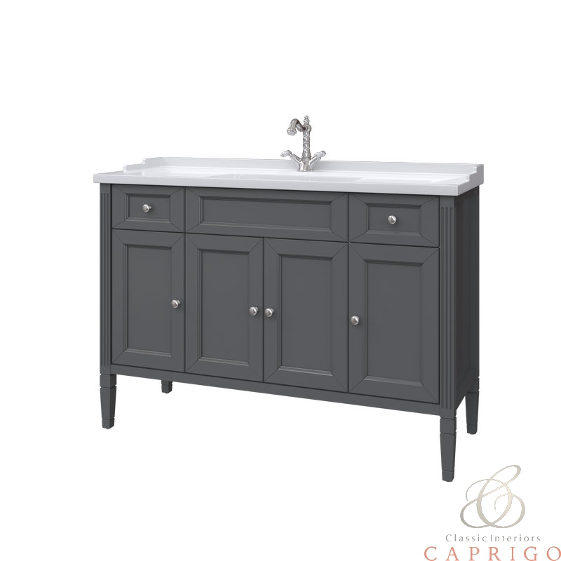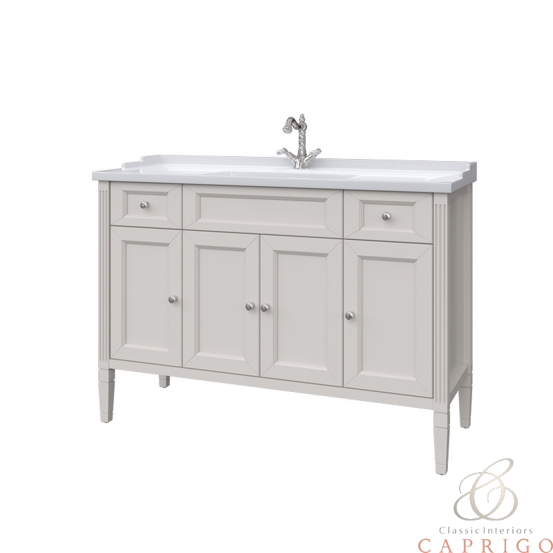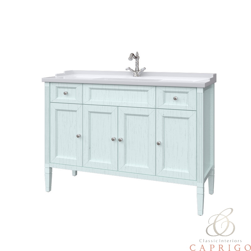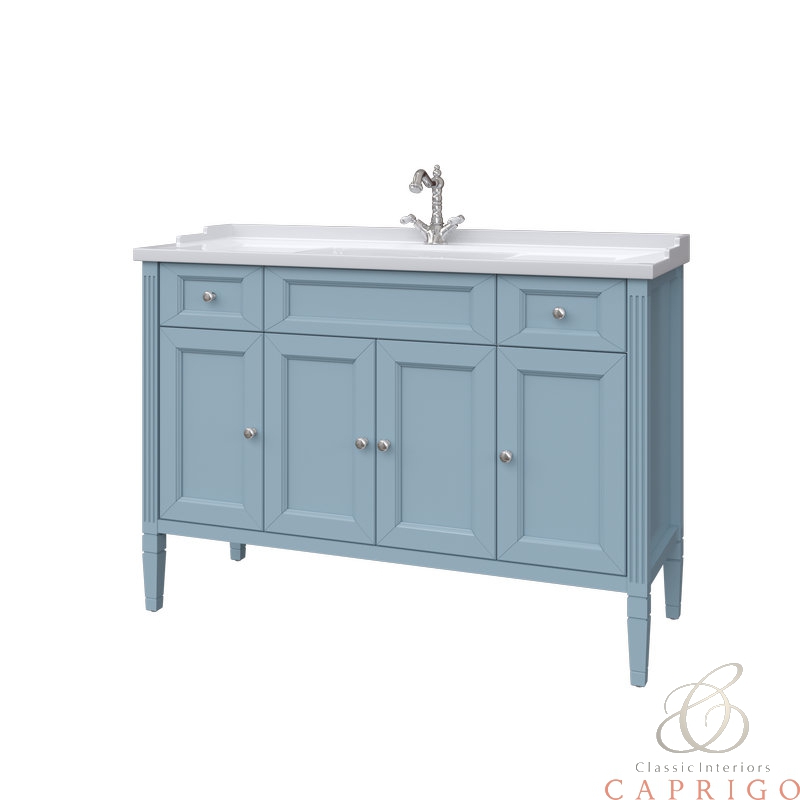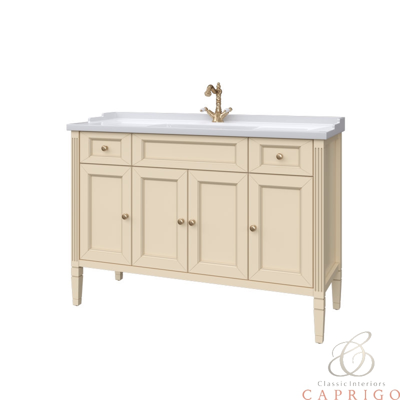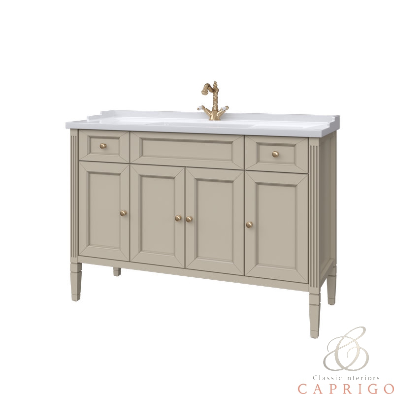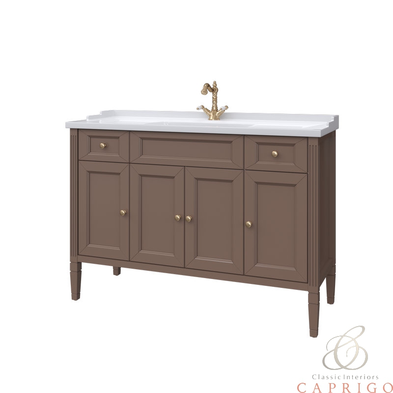 ALBION-concept 120 см тумба в ванную, производится под заказ в любых отделках "SOFTTOUCH" из реестра отделок CONCEPT. Оснащена четырьмя дверьми и двумя выдвижными ящиками. Фаянсовая раковина приобретается отдельно.