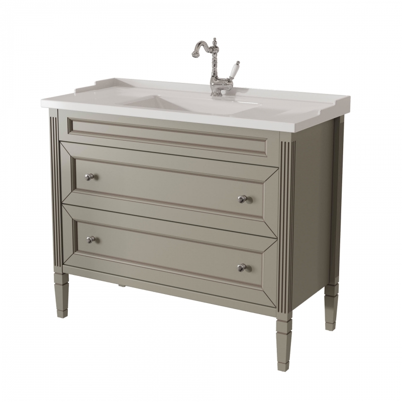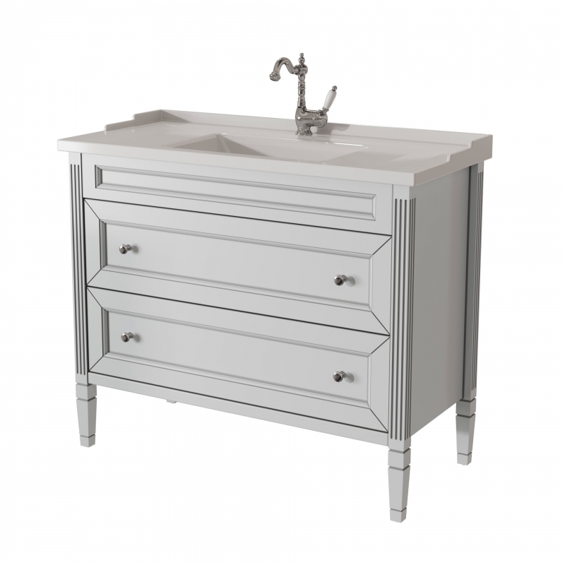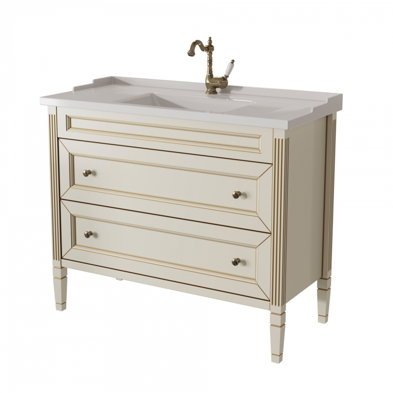 Тумба в ванную ALBION 100 PROMO одна из самых доступных моделей в ассорименте CAPRIGO.Тумба выпускается в отделках B-002 BIANCO ANTICO(бронз. фурн.) и B-077 BIANCO–GRIGIO (хром. фурн.).Укомплектована двумя стеклянными полками и двумя выдвижными ящиками. Раковина из фаянса продается отдельно.