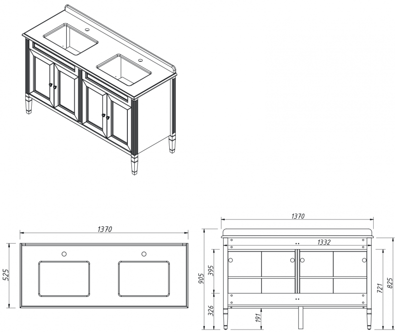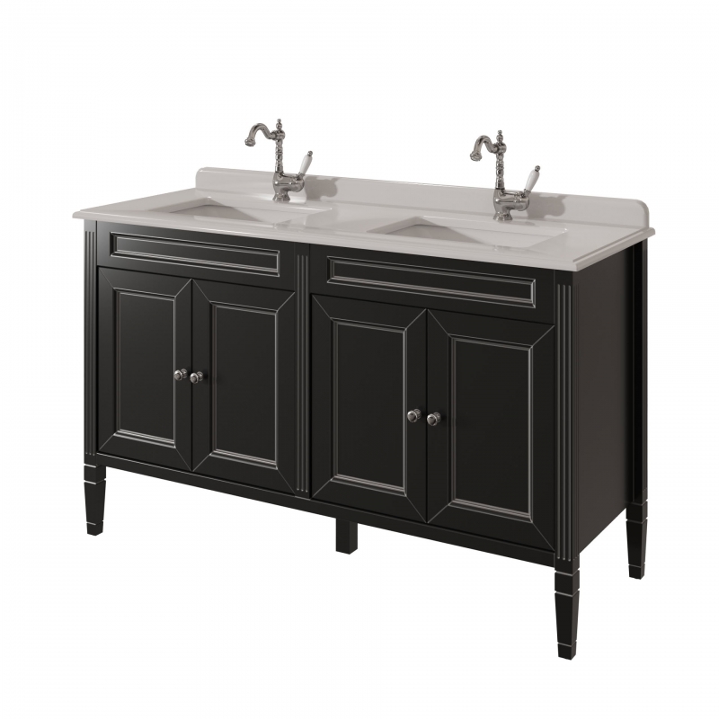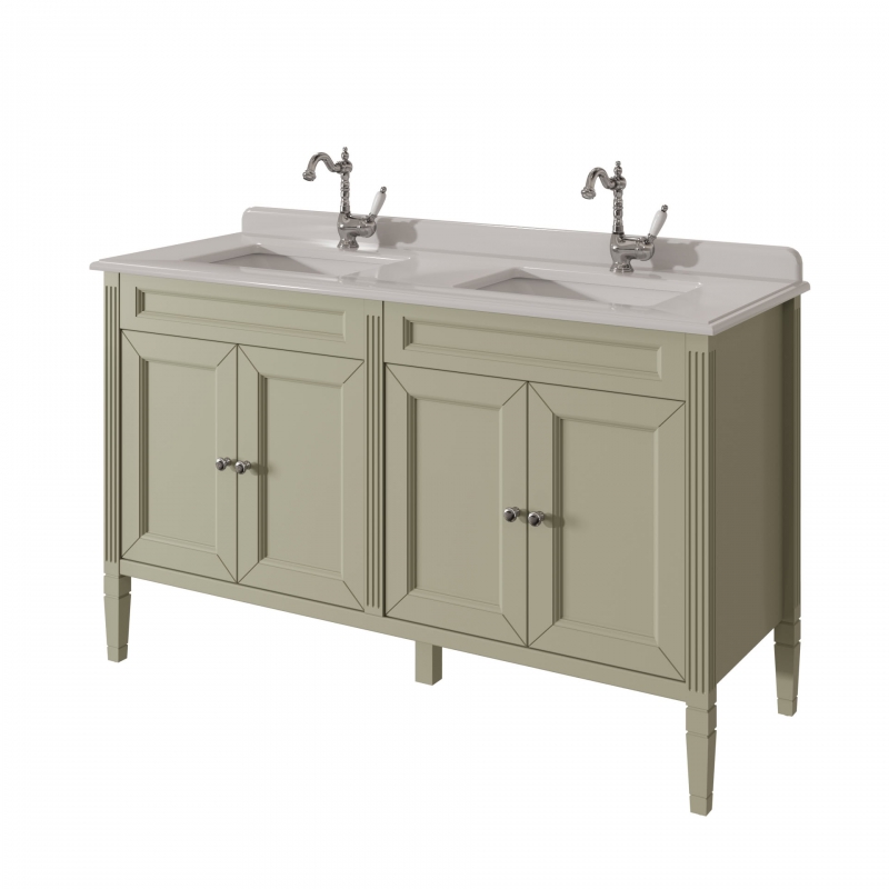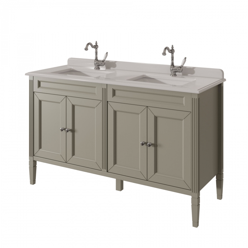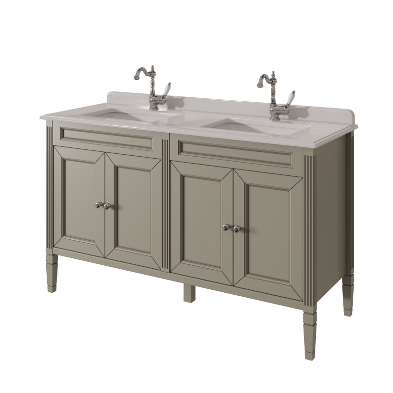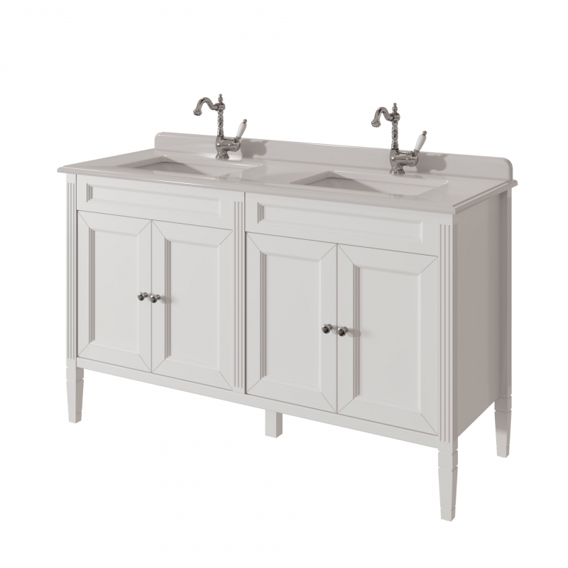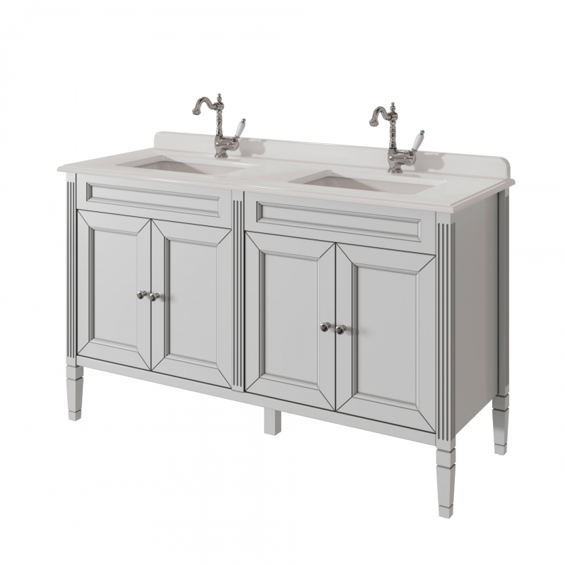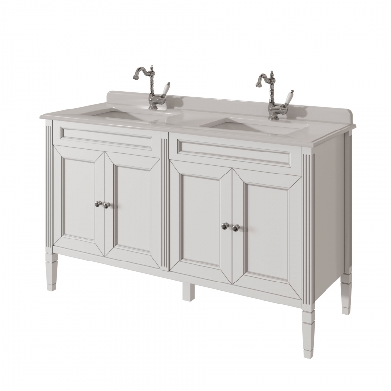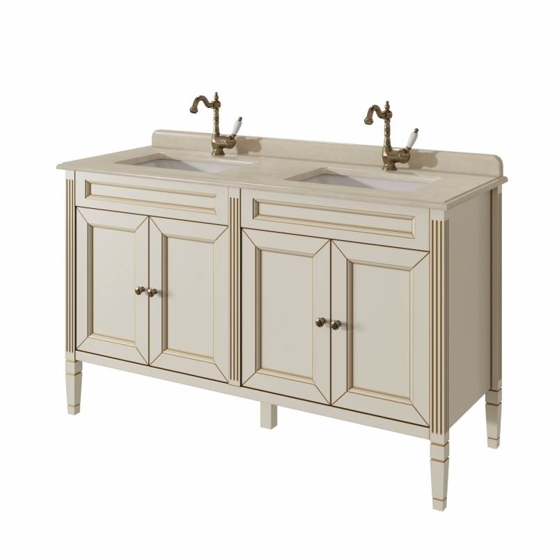 Тумба для столешницы 140см с 4дверьми в ванную ALBION 140 PROMO одна доступных моделей в ассорименте CAPRIGO.Тумба выпускается в отделках B-002 BIANCO ANTICO(бронз. фурн.) и B-077 BIANCO–GRIGIO (хром. фурн.).Укомплектована двумя врезными раковинами из фаянса и двумя стеклянными полками. Столешница на заказ из агломерата, мрамора или кварца.