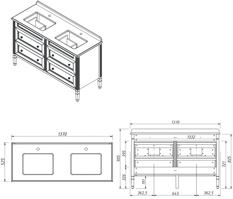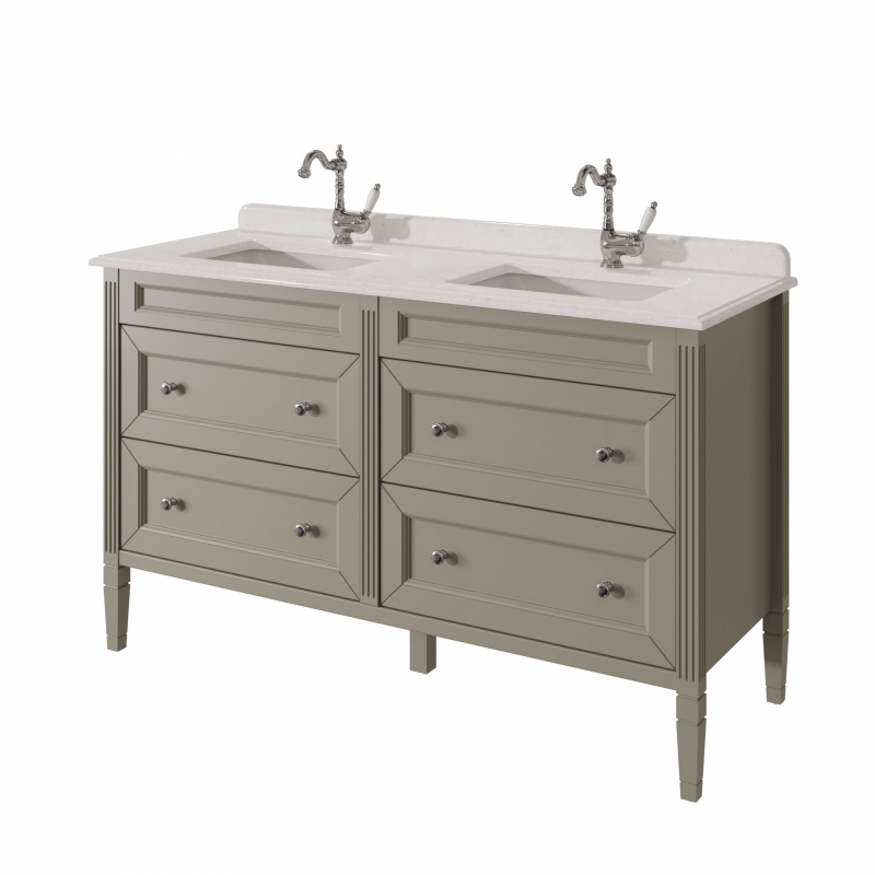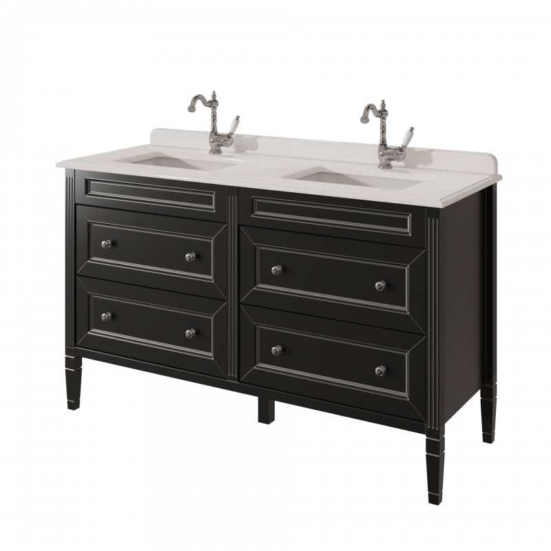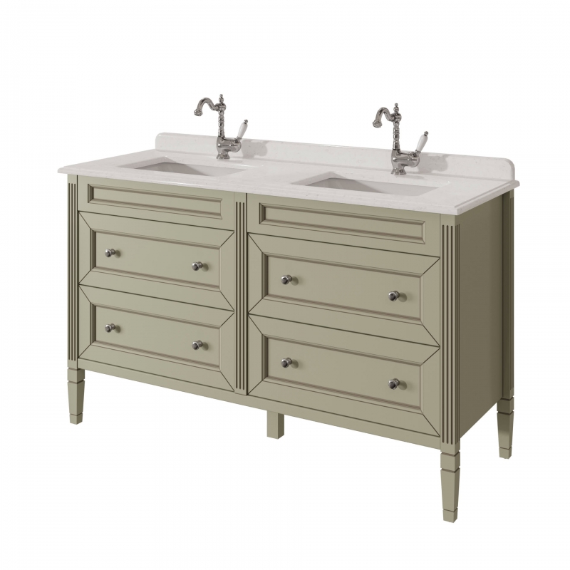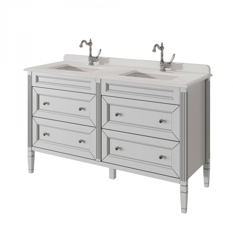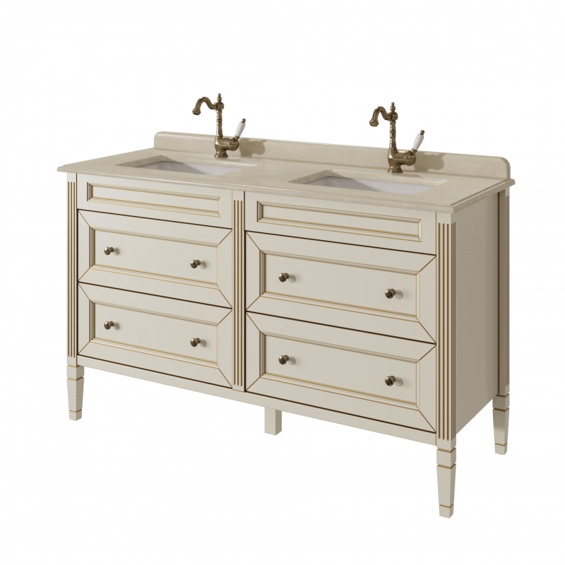ALBION promo Тумба для столешницы 140см, 4 ящика выпускается на склад в отделках: арт. B-002 (бронз. фурн.) арт. B-077 (хром. фурн.). Под заказ в отделках Чистыми Эмалями из Реестра отделок CLASSIC. В комплекте: четыре выдвижных ящика. Две фаянсовые раковины на выбор.