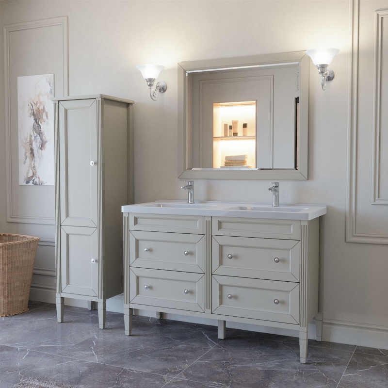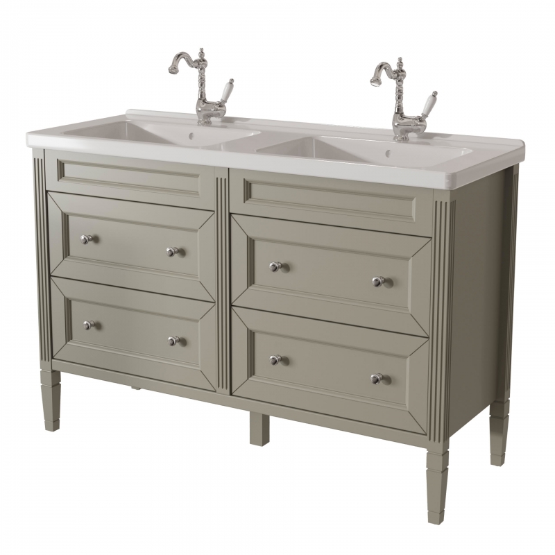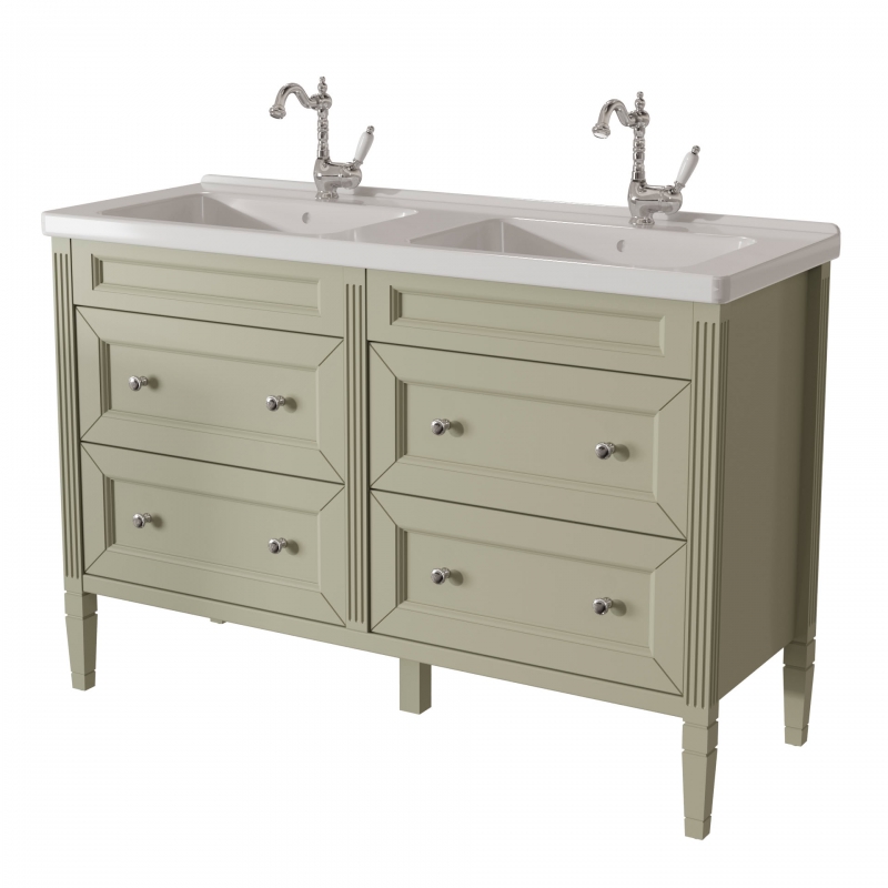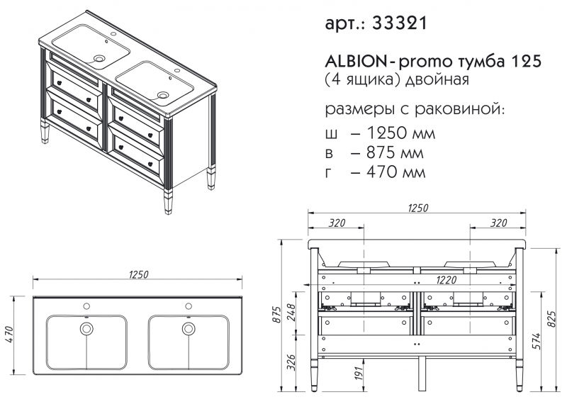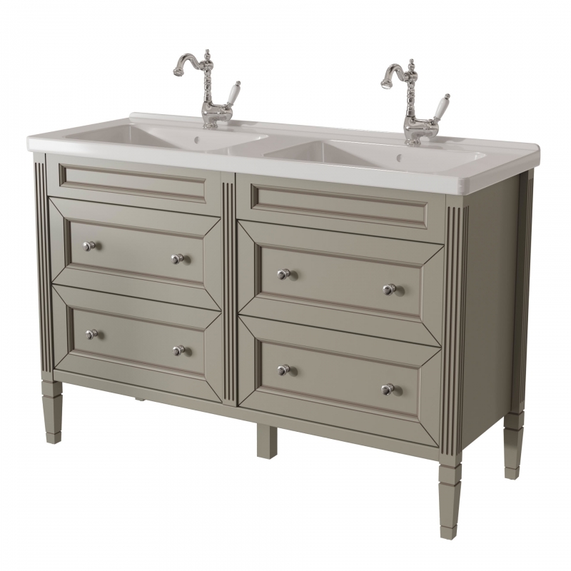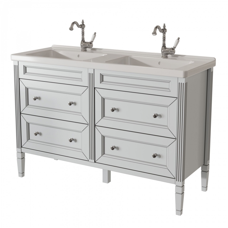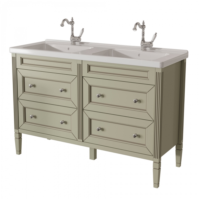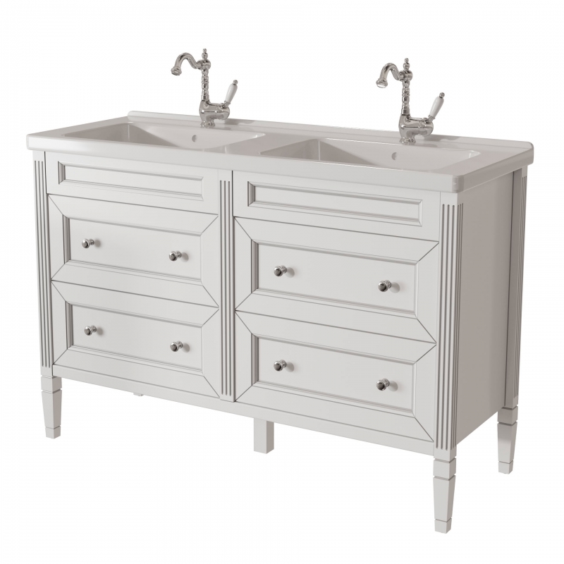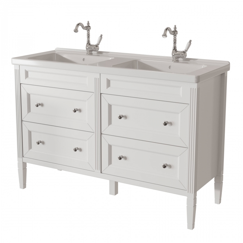ALBION promo тумба 125 (4 ящика) двойная выпускается на склад в отделках: арт. B002 (бронз. фурн.) арт. B077 (хром. фурн.) под заказ в отделках: Чистыми Эмалями из Реестра CLASSIC – без наценки. Раковина фаянс продается отдельно