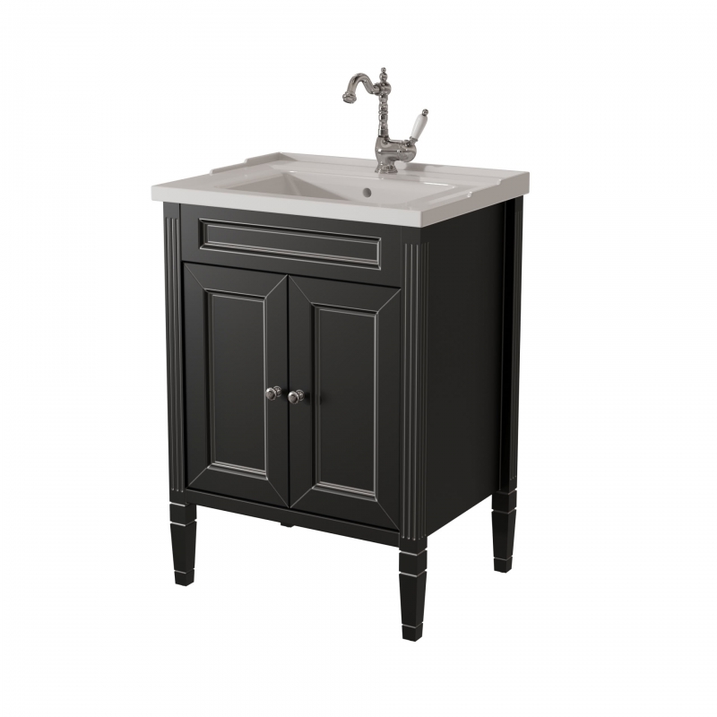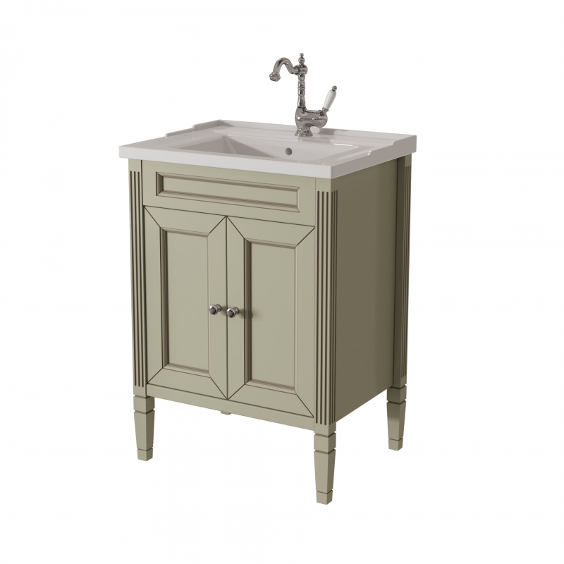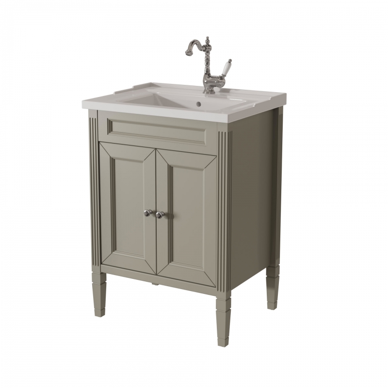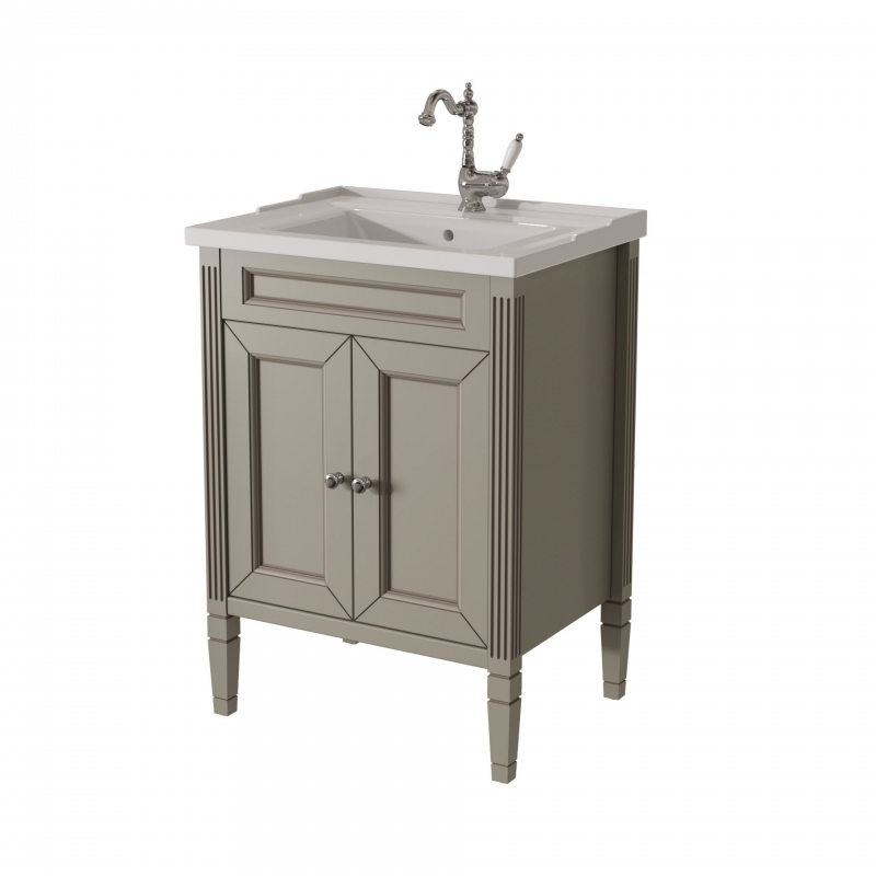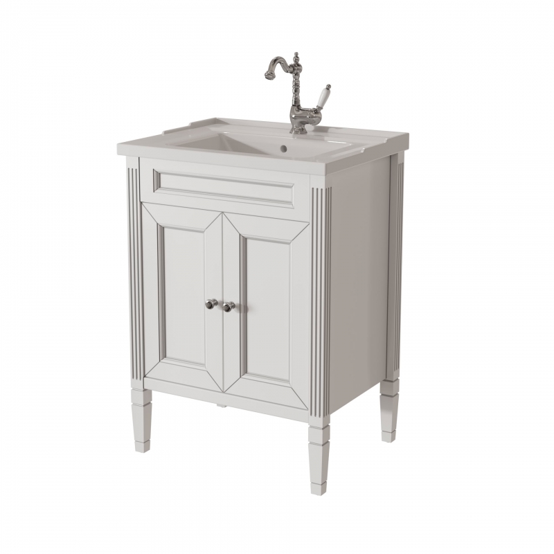 Тумба в ванную ALBION 60 PROMO одна из самых доступных моделей в ассорименте CAPRIGO.Тумба выпускается в отделках B-002 BIANCO ANTICO(бронз. фурн.) и B-077 BIANCO–GRIGIO (хром. фурн.). Раковина из фаянса продается отдельно. одна деревянная полка.
