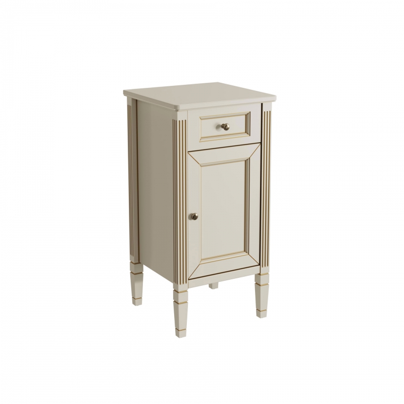 Напольный комод в ванную ALBION PROMO один из самых доступных моделей в ассорименте CAPRIGO.Комод выпускается в отделках B-002 BIANCO ANTICO(бронз. фурн.) и B-077 BIANCO–GRIGIO (хром. фурн.).Укомплектован стеклянной полкой 4 мм и выдвижным ящиком.Петли раположены справа.
