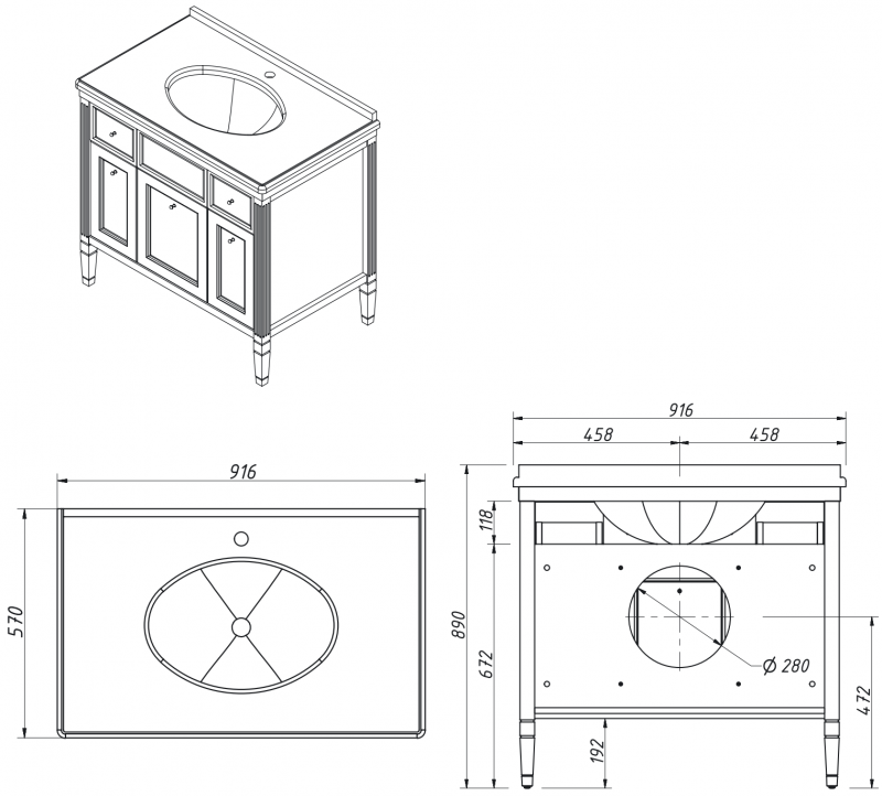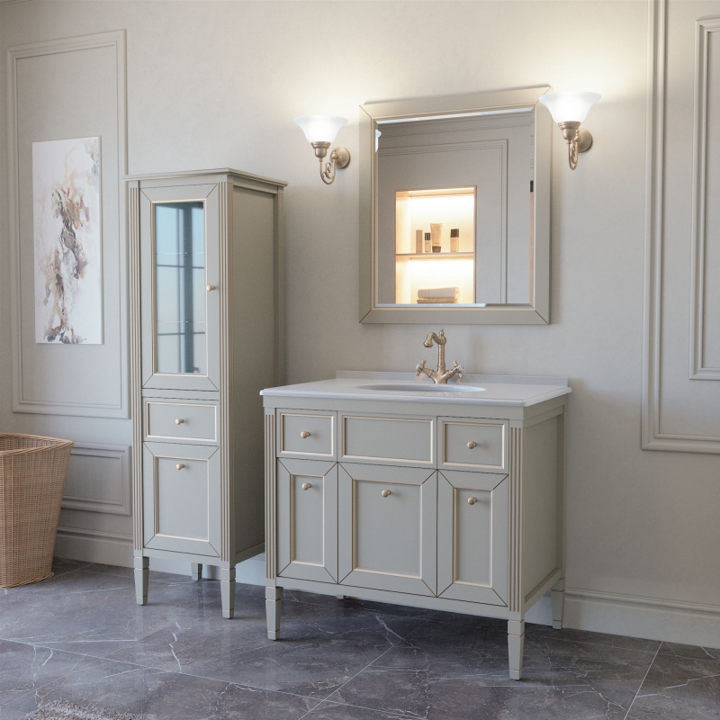 Тумба ALBION 90 — это вместительное и функциональное решение для ванной комнаты, предназначенное для установки со столешницей. Модель отличается просторными отделениями для хранения и классическим дизайном.