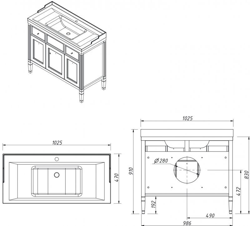 Габариты: 102,5 × 89 × 47 см (Ш×В×Г)