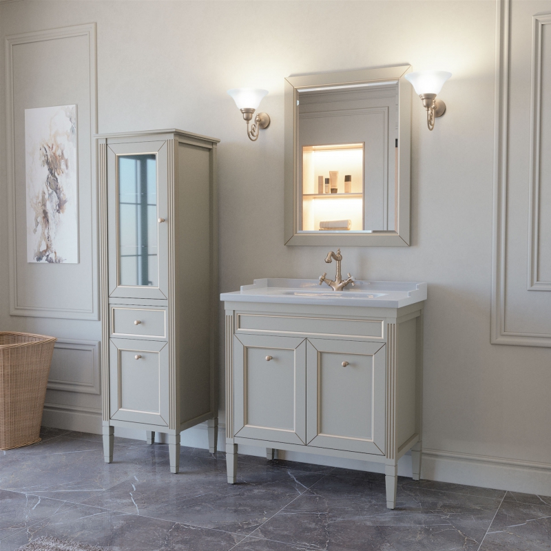 Тумба Albion 80 — воплощение благородства и утонченности в дизайне ванной комнаты. Модель сочетает в себе аристократичный английский стиль и современную функциональность.