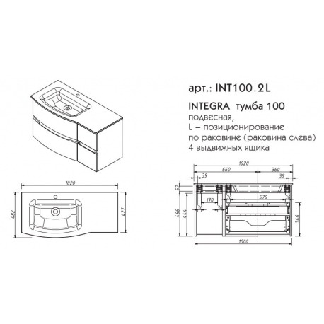 INTEGRA 100 тумба 4 ящика левая Артикул: INT100.2L