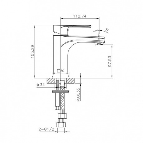 Артикул: 51-020 crmCмеситель ATLANTIC для умывальника с гибкой подводкой, без донного клапана