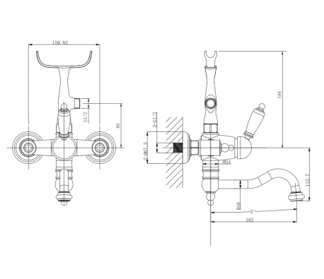 Артикул: 12-511-crmCмеситель FONTE для ванной с кронштейном для ручного душа, без душевого комплекта, излив с функцией девиатора (переключатель потока). Покрытие хром или бронза