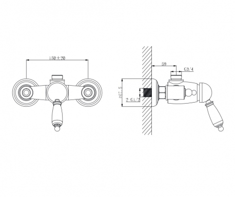 Смеситель FONTE для душевой кабины со штуцером 3/4", Покрытие хром, бронза.