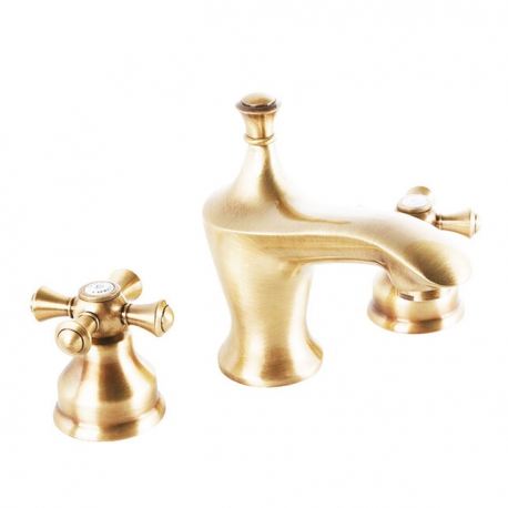 Артикул: 41-021 crm/vot/oroMONARCH смеситель для умывальника с установкой на три отверстия с донным клапаном, литой неповоротный излив, керамические кранбуксы 180', металлические, стилизованные под крест рукоятки. Покрытие хром или бронза или золото