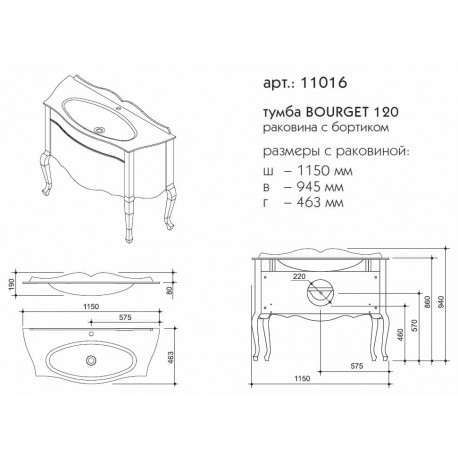 Тумба Bourget 100 производится в отделках из категории ЭМАЛИ, реестра отделок CLASSIC. Принт на фасаде по умолчанию. Раковина на выбор: стеклокерамика с бортиком, стекло-эмаль с бортиком или стекло-поталь с бортиком