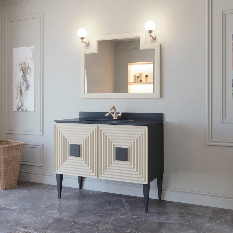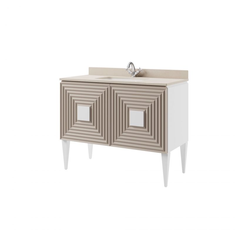Тумба для столешницы 110см с 2 дверьми. Фасады со сложной фрезеровкой. Выпускается в отделке Эмалями из реестра CLASSIC без патинирования. Варианты врезных раковин: арт. 540WK; 1427-540N. Отдельно заказывается столешница