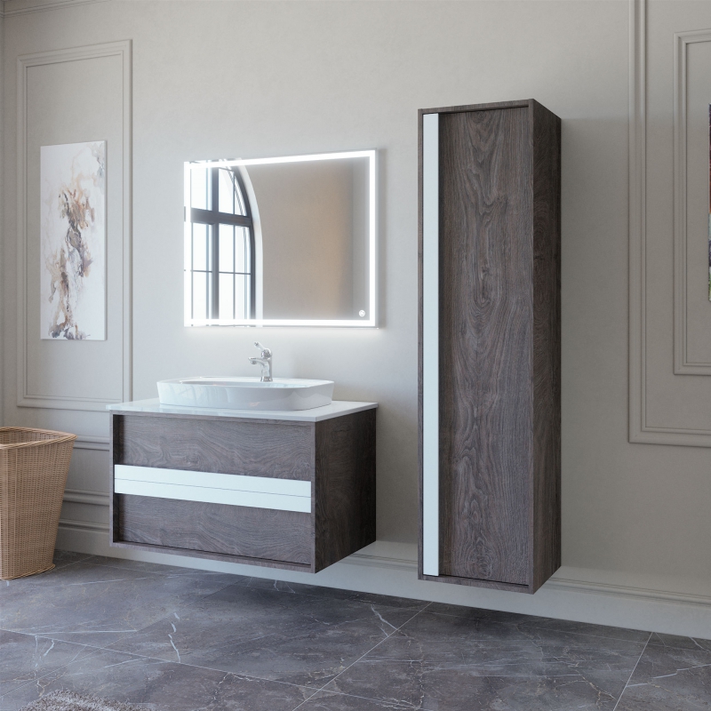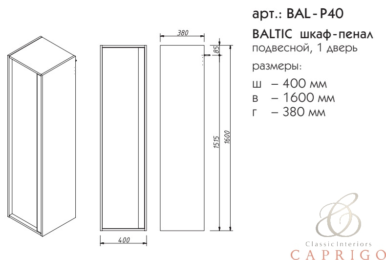 Подвесной BALTIC шкаф-пенал выпускается в отделках: "ЭКОШПОН – NATURA" Монолитные ручки – в отделках Чистые Эмали реестра отделок "CLASSIC"