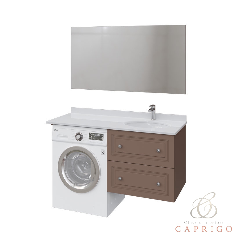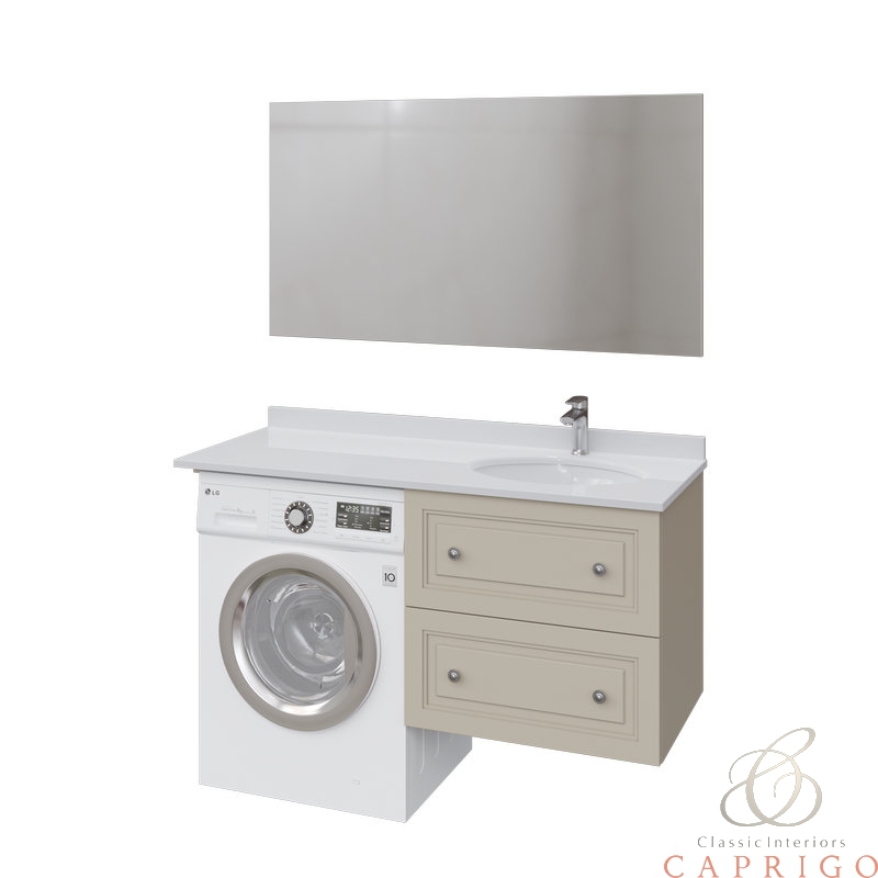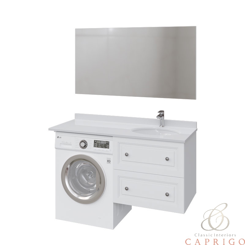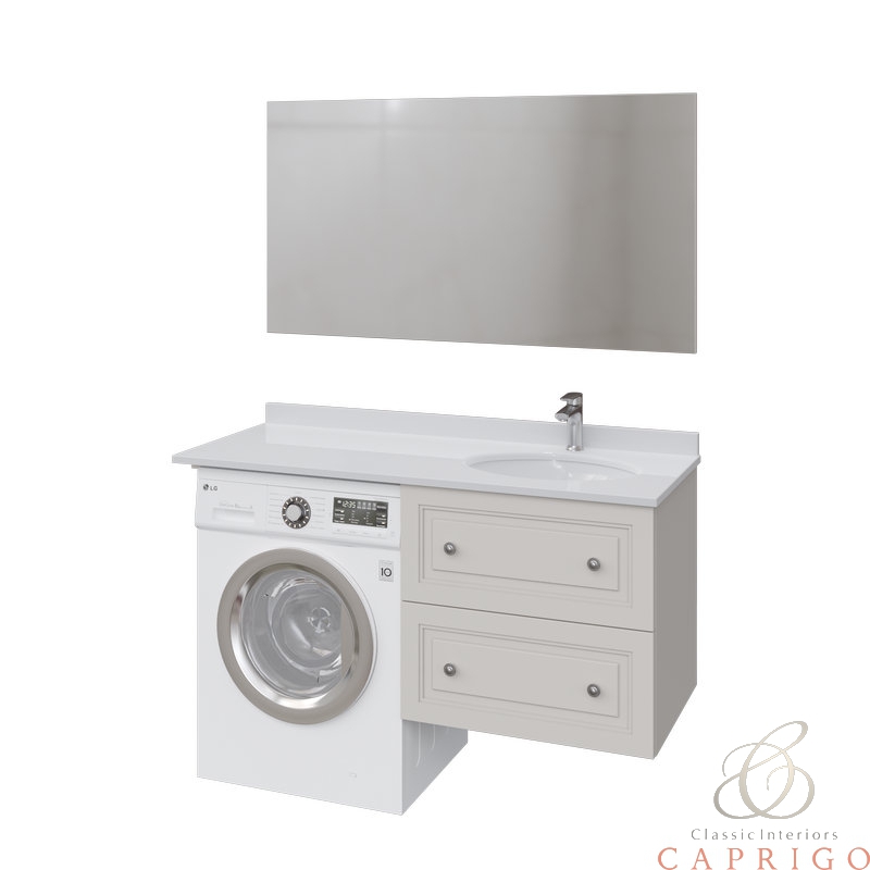 Единая бесшовная столешница из кварцевого камня CAPRIGO скрывает поверхность стиральной машины от глаз и внешнего воздействия влаги на корпус, при этом добавляет широкую рабочую зону, и сохраняет эстетические качества интерьера.