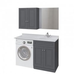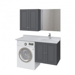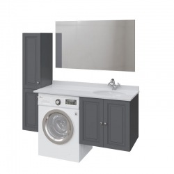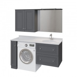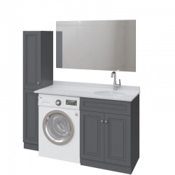 Главная особенность коллекции - конструкция по вашему индивидуальному размеру. У нее могут быть узкие, но функциональные шкафчики, пространство тдля стиральной машины и втроекнная раковина, свижвижными ящиками под ней или полочками классического шкафа.