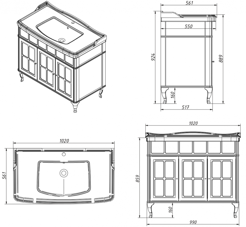 | Габаритные размеры тумба + раковина, ш/г/в, в см: | 102/56,1/92,4 |