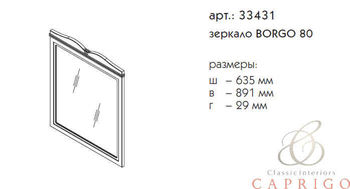 Зеркало BORGO 80 см станет отличным украшением Вашей ванны. Выпускается под заказ в отделках Эмалями из Реестра CLASSIC. Без фацета.