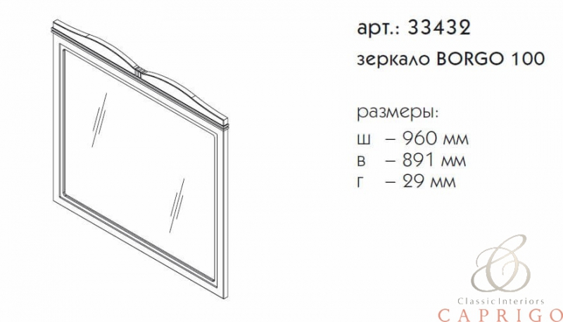 Зеркало BORGO 100 см станет отличным украшением Вашей ванны. Выпускается под заказ в отделках Эмалями из Реестра CLASSIC. Без фацета.
