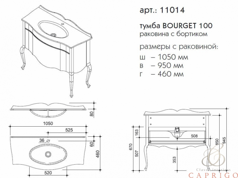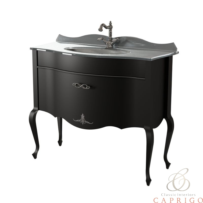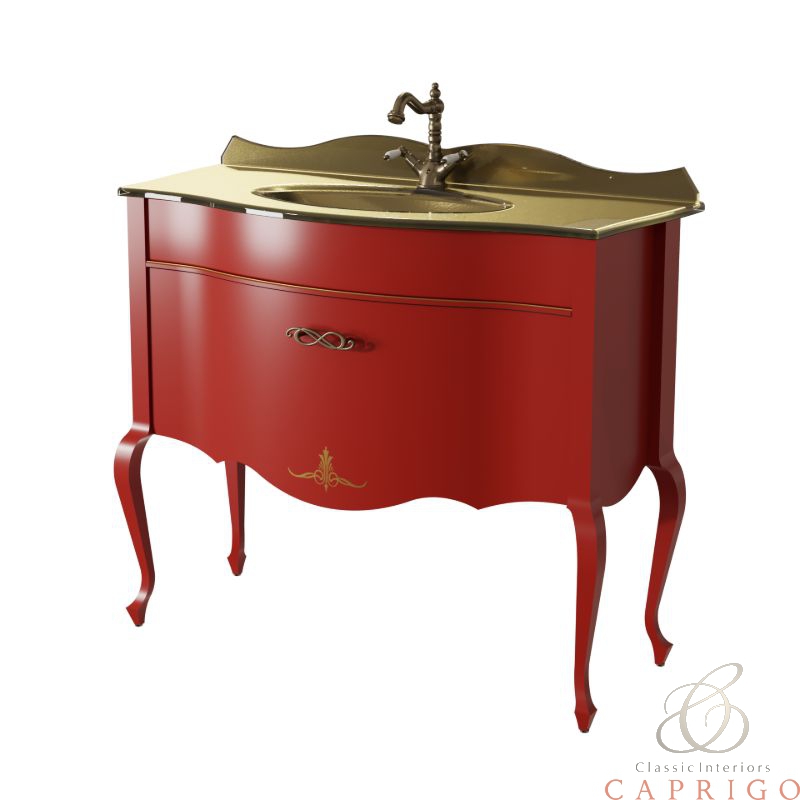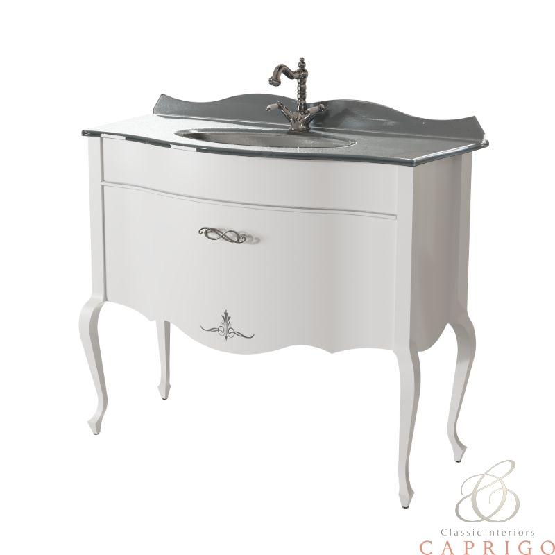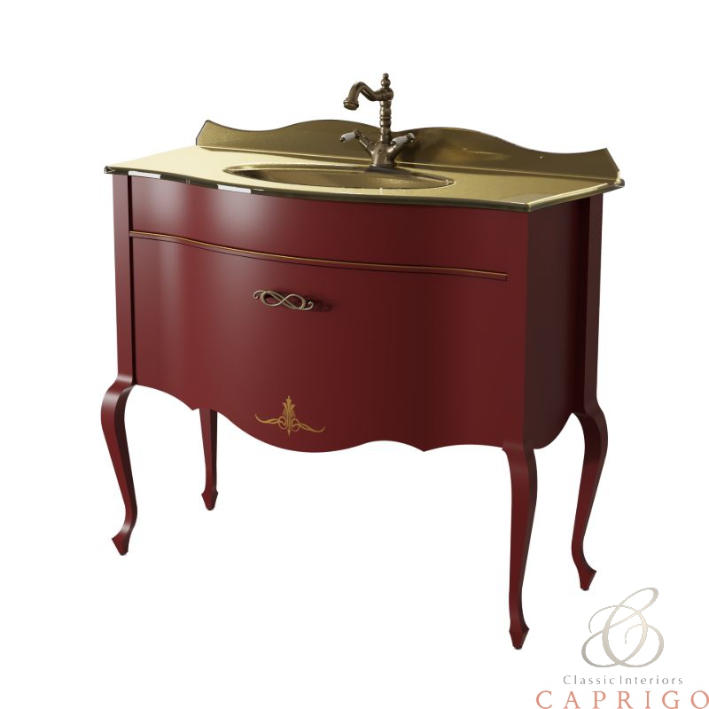 Тумба Bourget 100 производится в отделках из категории ЭМАЛИ, реестра отделок CLASSIC. Принт на фасаде по умолчанию. Раковина на выбор: стеклокерамика с бортиком, стекло-эмаль с бортиком или стекло-поталь с бортиком