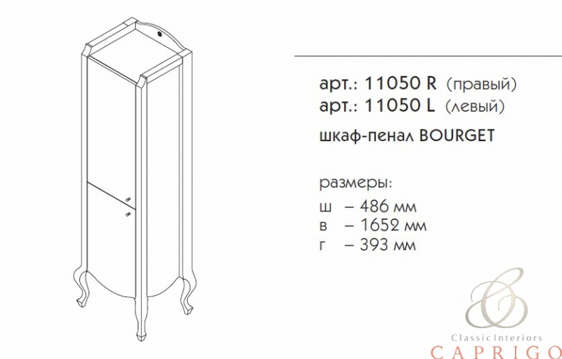 Пенал BOURGET левый производится в отделках из категории ЭМАЛИ, реестра отделок CLASSIC Принт на фасаде по умолчанию Три полки 4 мм, (стекло)