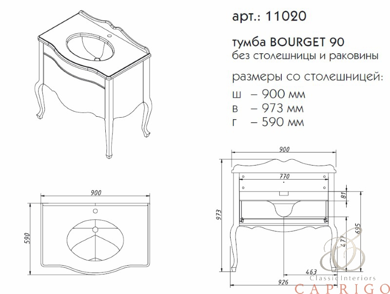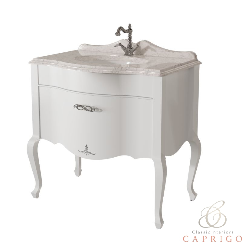 Тумба BOURGET 90 для столешницы производится в отделках из категории ЭМАЛИ, реестра отделок CLASSIC. Принт на фасаде по умолчанию. Различные варианты врезных раковин из фаянса или стеклокерамики. Разные столешницы на выбор.
