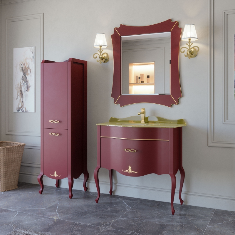 Тумба BOURGET 90 производится в отделках из категории ЭМАЛИ, реестра отделок CLASSIC. Принт на фасаде по умолчанию. Раковина на выбор: стеклокерамика с бортиком, стекло-эмаль с бортиком или стекло-поталь с бортиком