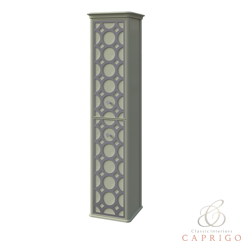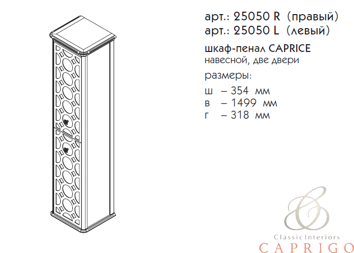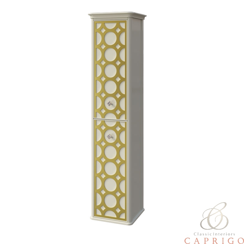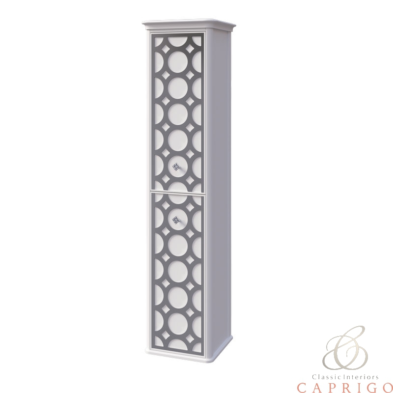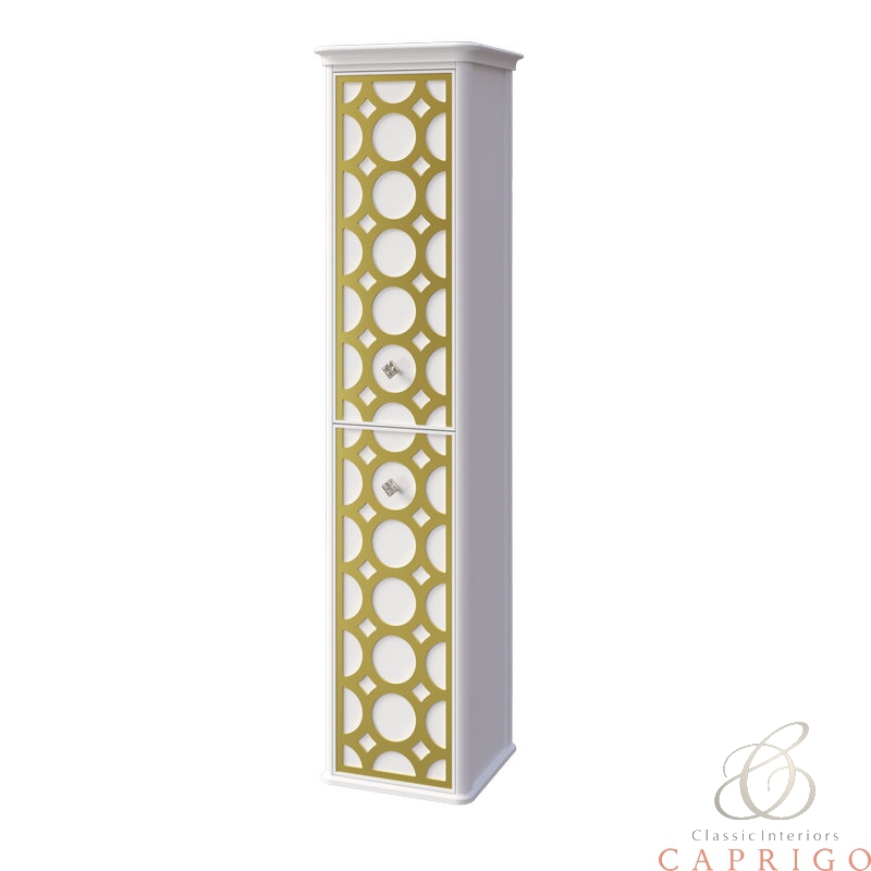 шкаф-пенал CAPRICE правый производится только в отделках цветными эмалями без патинирования, двуцветие (круги) четыре стеклянные полки 4 мм