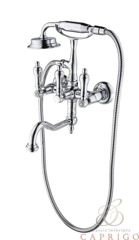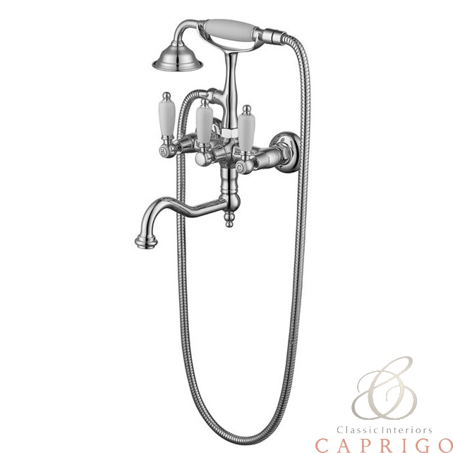 Хромированный настенный смеситель ADRIA-Classic для ванной с подставкой для лейки